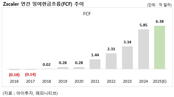 비록 적자를 기록하고 있지만, 지스케일러는 건전한 현금흐름을 유지하고 있습니다. 회계상 이익은 마이너스이지만, 실제 현금 흐름은 2018년부터 흑자를 이어오고 있습니다. 특히 2025 회계연도 1분기에는 매출 대비 잉여현금흐름 비율이 46%를 기록하며 강한 현금 창출력을 보여주었습니다.