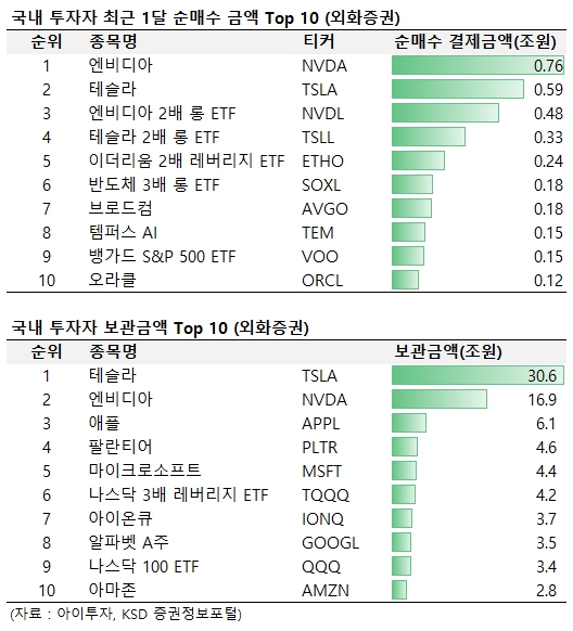 미국 주식에 대한 관심이 꾸준히 증가하고 있습니다. 업계에 따르면 지난해 미국주식에 투자한 투자자는 710만명으로 국내주식 투자자의 절반에 달했습니다. 예탁결제원 자료에 따르면, 국내 개인 투자자들은 엔비디아, 테슬라, 브로드컴처럼 인지도가 높은 미국 주식을 주로 보유하고 있으며, 레버리지 ETF나 아이온큐 같은 투기성이 강한 종목들도 큰 인기를 끌고 있습니다.