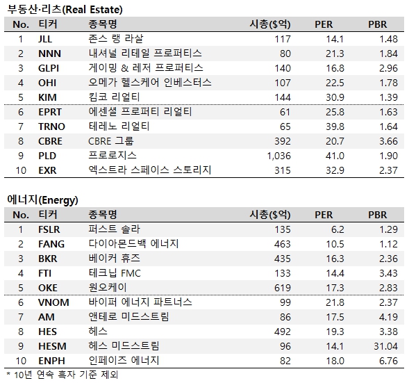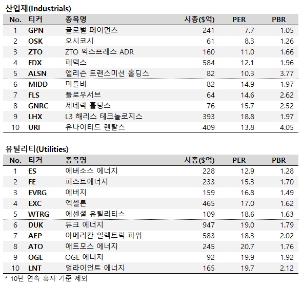 - 최근 10년 內 연간 적자X (유틸리티, 에너지 섹터 제외)
