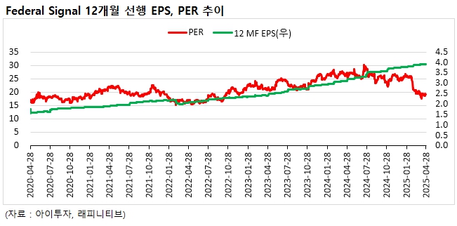 ⑥ 페더럴 시그널(Federal Signal, FSS): 페더럴 시그널은 공공 안전 및 산업용 장비 제조에 특화된 기업으로, 긴급 차량용 사이렌, 경고 시스템, 청소 차량, 산업용 진공 장비 등을 제공합니다. 주요 고객은 지방정부, 소방 및 경찰기관, 산업 시설 등이며, 안전성과 생산성 향상을 위한 솔루션을 제공합니다.