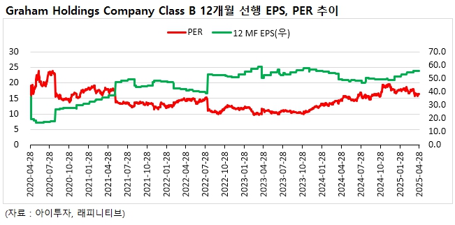 ⑦ 그레이엄 홀딩스(Graham Holdings, GHC): 그레이엄 홀딩스는 교육, 미디어, 제조, 헬스케어 등 다양한 산업에 걸친 사업 포트폴리오를 보유한 지주회사입니다. 대표적인 자회사로는 교육기관인 캐플란(Kaplan)과 지역 방송사, 온라인 미디어, 의료 서비스 및 자동차 관련 제조업체들이 있으며, 다각화된 사업 구조를 통해 안정적인 수익 기반을 유지하고 있습니다.