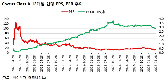 ③ 주당순이익(EPS) 연평균 성장률(3년) 20%~50% : 피터 린치는 성장성이 높은 주식을 적정한 가격에 매수하는 것을 선호했습니다. 그러나 성장률이 지나치게 높은 기업은 경계했는데, 이런 기업들은 주로 유행 산업에 속할 가능성이 높고, 지속적인 성장이 어렵다고 판단했기 때문입니다.