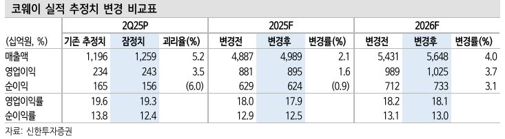 코웨이의 지난 2분기 매출은 전년 동기 대비 16.3% 증가한 1조2600억원, 영업이익은 2427억원으로 같은 기간 14.9% 늘었다. 조 연구원은 “광고판촉비가 늘었지만, 어려운 소비 환경 속에서도 판매량 성장세를 바탕으로 역대 최대 실적을 거뒀다”고 평가했다.