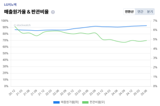 1. 수익성1: 3분기(잠정) 연환산 매출액은 20조 9136억원, 영업이익은 5881억원으로 전년 동기 대비 각각 5.5%, 3.8% 감소했으며, 2분기 말 매출원가율은 92.7%, 판관비율은 4.9%를 기록했다.