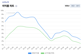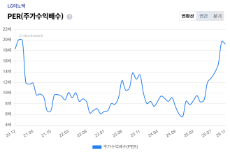 5. 밸류에이션: 6일 종가 기준 PER은 19.2배로 밴드 상단에 있으며, 3분기(잠정) 연환산 주당순이익(EPS)는 13,193원으로 전년 동기 대비 55% 감소했다.