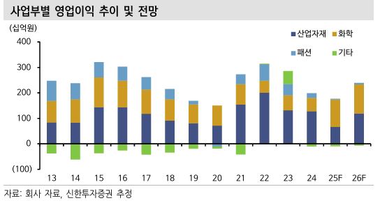 이 증권사 이진명 연구원은 “아라미드는 광케이블향 수요 회복과 경쟁사 물량 이탈로 하반기부터 점진적 개선세를 보이고 있으며, 화학 부문은 경쟁사 설비 폐쇄와 차세대 전자소재인 mPPO(데이터센터 및 AI 반도체용) 증설을 통해 수익성과 성장성 확보가 가능하다”고 봤다.