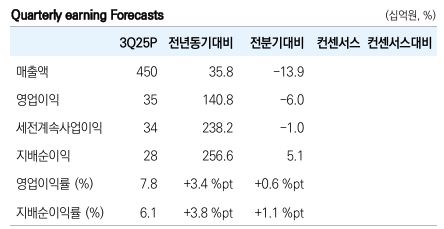 손 연구원은 “3분기는 비수기 영향으로 전분기 대비 물량 둔화가 있었지만, 4분기는 고마진 변압기 출하 확대와 증설분 일부 반영으로 실적 개선이 예상된다”며 “변압기는 미국 공급자 우위 환경이 지속되며 가격 전가력이 매우 높아 관세 인상에 따른 원가 영향도 제한적”이라고 설명했다.