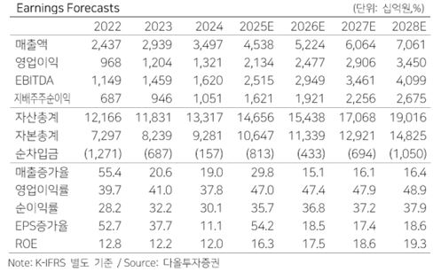 올해 별도 기준 매출액은 전년 대비 29.8% 늘어난 4조5384억원, 영업이익은 같은 기간 61.5% 증가한 2조1342억원으로 내다봤다. 5공장 매출은 내년 2분기부터 반영될 전망이다.