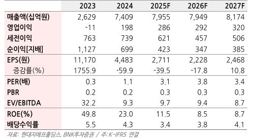 “현대지에프홀딩스, 목표가↑…계열사 실적 개선+주주환원 확대”-BNK