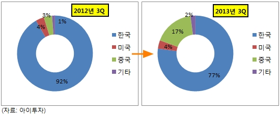 삼성전자는 중국 시안 투자와 함께 17라인 투자를 재개하고 있다. 또한 일부 라인 공정전환을 위해 투자가 진행될 예정이다. 디스플레이 분야는 UHD TV 양산을 위한 투자와 플렉서블 디스플레이 투자가 예상되고 있다. 한양이엔지도 삼성의 중국 투자에 발맞추어 중국 매출 비중이 증가했다. 한양이엔지의 국가별 매출을 보면 2013년 3분기 중국 비중 17%를 기록해 전년 동기 3% 대비 14%p 늘었다.