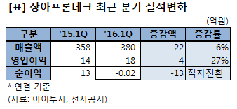 기관 투자자의 매수세가 눈에 띄는 가운데, 상아프론테크는 지난 16일 분기보고서를 냈다. 이에 따르면 올해 1분기 매출액은 전년 동기 대비 6% 증가한 380억원이다(이하 연결 기준). 영업이익도 27% 증가한 18억원을 기록했으나, 영업외비용이 22억원 가량 발생해 순이익은 적자전환했다.