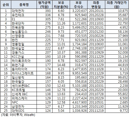 [큰손동향]신영자산, 대덕전자 393억원어치 보유