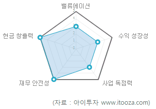주식MRI 종합 점수는 25점이 최고 점수이며 높을수록 저평가 우량 기업이다. 또한 종합점수가 높을수록 5각형 모양의 도형 내부가 가득찬 그물 형태로 나타난다.