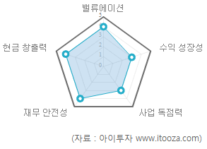 중장기적으로 이익 성장률이 시장평균으로 중간성장형 기업에 속하며 재무 안전성은 높아 안전한 편이다. 또한 소비자 독점력이 보통으로 산업내 경쟁이 심화되면 수익성이 하락할 가능성이 있다.