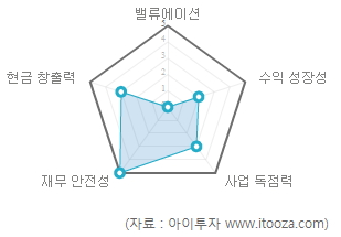 재무 안전성은 높아 안전한 편이다. 중장기적으로 이익 성장률은 시장평균으로 중간성장형 기업에 속하며 소비자 독점력도 보통으로 산업내 경쟁이 심화되면 수익성이 하락할 가능성이 있다.