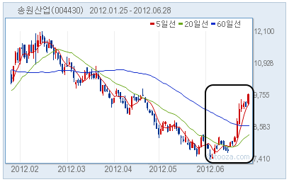 주가 하락을 보이던 송원산업이 최근 상승세를 보여 관심을 끈다. 송원산업의 주가는 지난 4월초부터 5월말까지 약 25% 하락했다. 그러던 주가가 6월 들어 다른 행보를 보이기 시작했다. 지난 6월 4일 최저점인 7410원을 기록한 이후 꾸준히 상승하더니 전날(28일) 9760원으로 거래를 마감했다. 최저점부터 전일가까지 주가 상승률은 32%다. 송원산업은 바닥을 다지고 본격 반등에 나선 것일까?