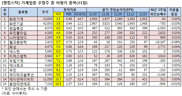 [랭킹스탁] 저평가 우량주 15선-기계업종