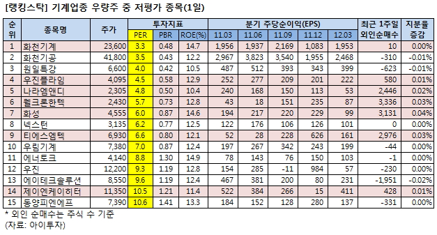 [랭킹스탁] 저평가 우량주 15선-기계업종