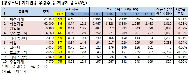 [랭킹스탁] 저평가 우량주 10선-기계업종