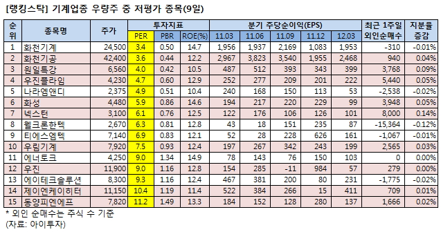 [랭킹스탁] 저평가 우량주 15선-기계업종