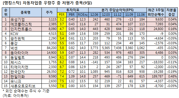 [랭킹스탁] 저평가 우량주 15선-자동차업종