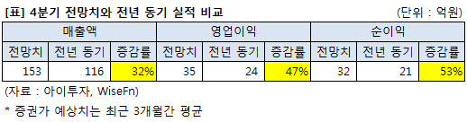 증권가는 4분기도 양호한 성장세를 이어갈 것으로 기대하는 분위기다. 와이즈에프엔에 따르면 최근 3개월간 증권사가 전망한 뷰웍스의 4분기 매출액 평균은 전년 동기 대비 32% 늘어난 153억원이다. 영업이익은 47% 늘어난 35억원, 순이익은 53% 늘어난 32억원이다.