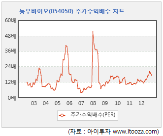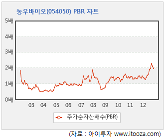 | 농우바이오 | 21,350원 | ▲850원 (4.2%) | 607 | 162 | 167 | 16 | 1.97 | 12.3% |