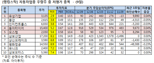[랭킹스탁] 저평가 우량주 10선-자동차업종