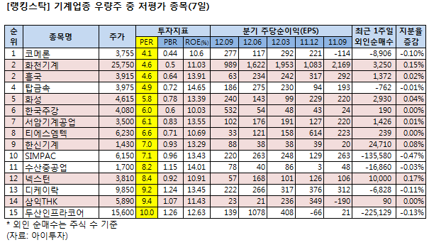 [랭킹스탁] 저평가 우량주 15선-기계업종