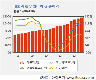 이 회사는 지난 2008년 금융위기 후 웰빙의약품 판매 감소로 실적 부진을 겪었다. 하지만 지난 2011년부터 실적 턴어라운드를 지속하고 있다. 지난해 3분기 누적 기준으로 영업이익과 순이익이 100억과 50억원을 기록해 전년 연간치를 이미 33%와 3% 상회했었다. 전문의약품, 웰빙의약품, 수탁매출이 고르게 늘고, 이에 더해 신규 품목인 '의료기기' 관련 매출이 가파른 성장세를 보인 결과다.
