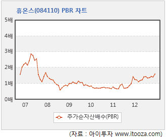 한편, 지난해 연말 자본총계 기준 현재 휴온스의 주가순자산배수(PBR)는 1.8배로 5년 평균 1배보다 높게 거래되고 있다.