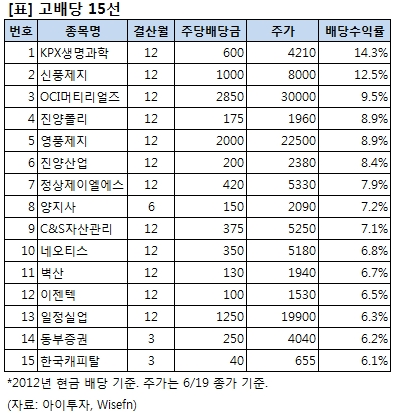 (바로가기: [i레터]하락장 고민 덜어줄 고배당 주식 15선 )