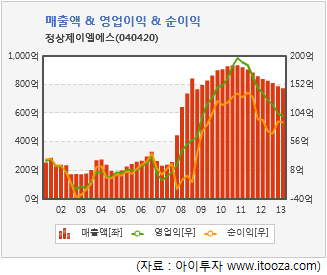 * 매출액, 영업이익, 순이익은 2013년 1월~3월 누적, 단위는 억원, K-IFRS 개별 재무제표 기준.