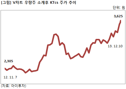 [적중!] KTcs, 'V차트 우량주' 소개 후 +57%