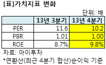 * 기간 : 2013년 1월~9월 누적, 단위는 억원, 매출액·영업이익은 K-IFRS 개별, 순이익은 K-IFRS 연결지배
