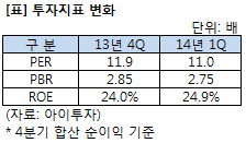 1분기 실적을 반영할 경우, 유진테크의 최근 4분기 합산 순이익 기준 주가수익배수(PER)는 11.9배에서 11배로 내려간다. 주가순자산배수(PBR)는 2.85배에서 2.75배로 하락하고, 자기자본이익률(ROE)은 24%에서 24.9%로 오른다.