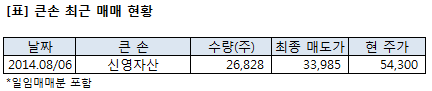 금융감독원 전자공시에 따르면 지난 8월 8일 신영자산운용은 한진의 지분을 줄였다고 밝혔다. 지난 8월 6일 기준 지분율은 4.50%로 직전보고서(2014년 6월 30일) 대비 1.06%P(12만6854주) 감소했다. 최근 거래일은 지난 보고 기준일로 2만6828주(일임매매분 포함)를 평균 3만3985원에 장내매도 했다.
