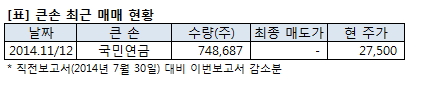 지난해 11월 12일 국민연금은 GS건설 지분을 일부 처분했다고 공시했다. 최근 거래일인 지난 11월 12일 기준 보유량은 4.95%로 직전보고서(2014년 7월 30일) 대비 1.06%P(74만8687주) 줄었다.
