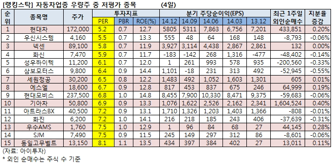 [랭킹스탁] 저평가 우량주 15선-자동차업종