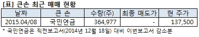 국민연금은 효성의 지분을 일부 축소했다고 지난 7월 8일 공시했다. 보고서 작성일인 4월 8일 기준 보유량은 8.25%로 직전보고서(2014년 12월 18일) 대비 1.04%P(36만4977주) 줄었다.