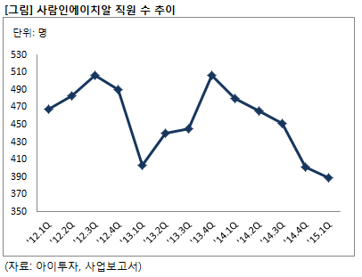 이에 따라 2013년 4분기 말엔 직원 수가 507명까지 증가했다. 이 결과 급여 등 판관비가 늘어나면서 수익성이 부진했다. 하지만 이후 점차 직원 수를 줄여나갔다. 올해 1분기 사람인에이치알의 직원은 총 389명이다. 증권업계에 따르면 올해 추가 충원이 없을 계획이다.