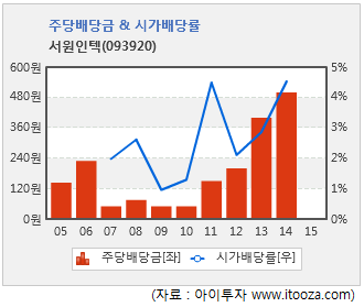 한편, 서원인텍은 배당 매력도 있다. 지난 2005년부터 지난해까지 10년간 지속적으로 배당금을 지급하고 있다. 주당배당금은 지난 2010년 50원에서 지난해 500원으로 꾸준히 늘었다. 올해도 지난해와 같은 수준으로 배당할 경우, 전일 종가기준 시가배당률은 3.7%로 시중은행 예·적금 금리보다 높은 수준이다.