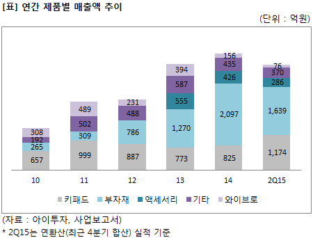 ▷ 키패드 : 입력장치(38.9%, 12년 470원 → 13년 335원 → 14년 288원 → 15년 반기 400원)