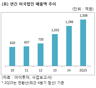 최근 경동나비엔의 미국 판매법인인 나비엔(Navien, 보유지분율 100%)의 매출액은 점차 증가하고 있다. 지난 2010년 620억원에서 지난 2013년 1000억원을 넘어섰고, 지난해는 1296억원을 기록했다. 지난 반기 누적기준 매출액은 780억원으로 전년 동기 대비 37% 늘어 증가세를 이어가고 있다.