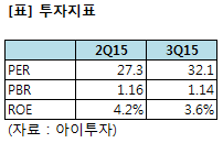 지난 3분기 실적을 반영한 하츠4,395원, ▼-15원, -0.34%의 연환산(최근 4분기 합산) 실적 기준 주가수익배수(PER)는 27.3배에서 32.1배로 상승하며, 주가순자산배수(PBR)는 1.16배에서 1.14배로 낮아진다. 자기자본이익률(ROE)은 4.2%에서 3.6%로 하락한다.